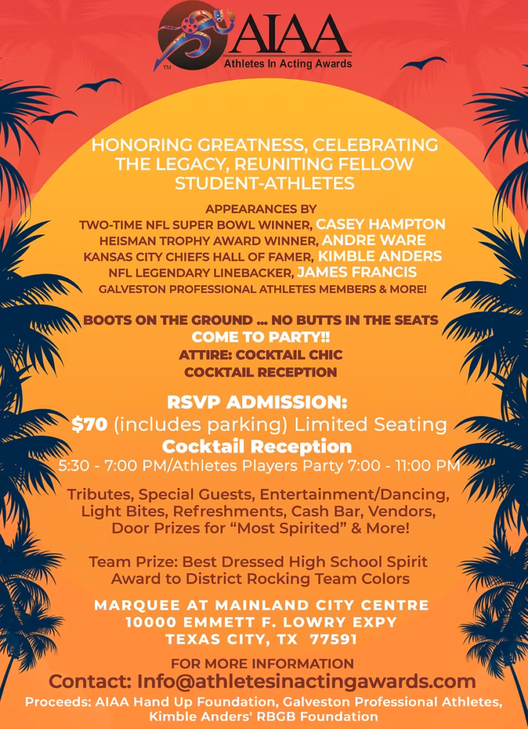 AIAA is designed to encourage professional athletes to perfect their performance skills beyond their field of expertise with the intent to bridge the gap between sports entertainment and Hollywood’s traditional performance infrastructure. It is our belief that these world-renowned athletes have the “star power” … and recognition to do it! C.H.E.E.R.S.!